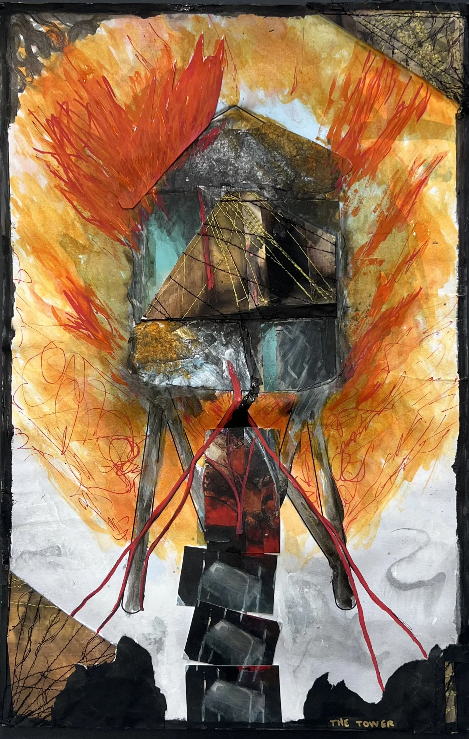 "A door in the floor (2)", 2024, oil and mixed media on paper, 42x33"
