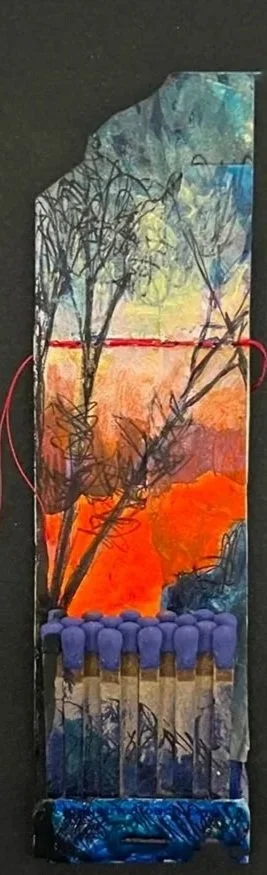 “Sliver (2), 2025, acrylic, ink and collage on matchbook